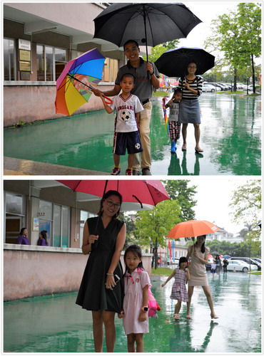今天早上下著瓢潑大雨,為了避免小朋友和家長(zhǎng)被雨淋濕,我校派出十多位男老師撐著“大傘”,一路為新生和家長(zhǎng)保駕護(hù)航。