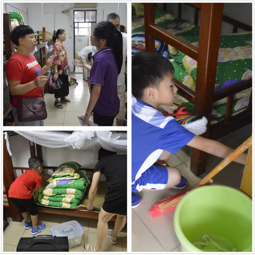 在生活老師的帶領(lǐng)下,孩子們和家長(zhǎng)來(lái)到宿舍。每張床鋪上的被褥已擺放好,孩子們?cè)诩议L(zhǎng)的幫助下,開(kāi)始有條不紊地整理行李。