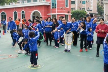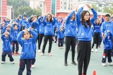 在陳碧雯老師帶領(lǐng)下,小朋友和家長(zhǎng)跳起律動(dòng)操,做好熱身準(zhǔn)備。