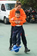 “跳跳球太刺激啦!既要考驗(yàn)我們的彈跳能力,更考驗(yàn)我們的平衡能力。”