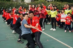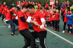 拔河比賽把運(yùn)動(dòng)會(huì)推向高潮,只見家長(zhǎng)們摩拳擦掌,緊握繩子,卯足了勁把繩子往后拉,比賽現(xiàn)場(chǎng)的氣氛緊張又激烈。