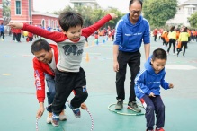 12月13日,初冬的校園,陽光明媚,天高氣爽,孩子們?cè)诿髅牡年柟庀掠瓉砹烁H獖W校幼兒園一年一度的親子運(yùn)動(dòng)會(huì)。隨著雄壯的《運(yùn)動(dòng)員進(jìn)行曲》響起,在老師的帶領(lǐng)下,小小健兒們邁著矯健的步伐,踏著強(qiáng)勁的節(jié)拍,和爸爸媽媽一起進(jìn)入運(yùn)動(dòng)場(chǎng)。
