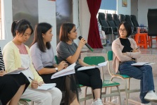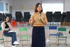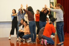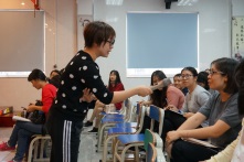 黃艷教授積極引導(dǎo)教師們探索新興教學(xué)模式,倡導(dǎo)“讓學(xué)習(xí)發(fā)生”的改革理念。講座分為兩部分,第一部分黃教授邀請老師們以學(xué)生的身份體驗多個課堂戲劇教學(xué)游戲和活動。讓大家通過親身參與掌握如何利用戲劇教學(xué)引導(dǎo)學(xué)生學(xué)習(xí)不同類別的知識。