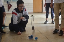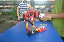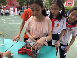 同學(xué)們自行拼裝、編制程序,制作出具備各種功能的機(jī)器人,他們的創(chuàng)新能力、思維能力、動(dòng)手能力贏得陣陣驚嘆聲。