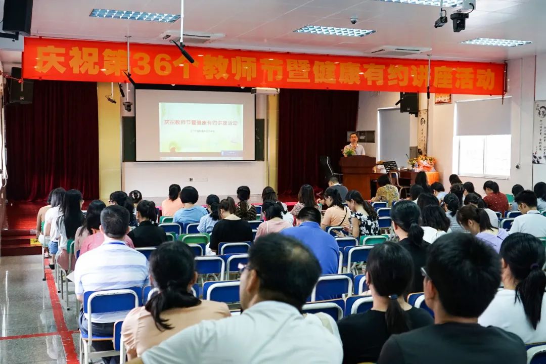 9月10日,為慶祝第36個(gè)教師節(jié),我校工會(huì)邀請(qǐng)了江門市婦幼保健院健康專家、國家二級(jí)心理咨詢師宋潔主任為全體教職工帶來一場生動(dòng)的健康講座,讓老師們不僅能增強(qiáng)健康意識(shí),更能學(xué)會(huì)守護(hù)健康的方法,進(jìn)而提升職業(yè)幸福感?;顒?dòng)由工會(huì)主席梁安主持。