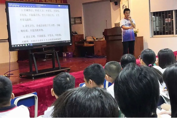 ◥德育處何漢標(biāo)副主任結(jié)合我校文明班評(píng)比標(biāo)準(zhǔn),組織學(xué)習(xí)《中學(xué)生守則》、《中小學(xué)生日常行為規(guī)范》。