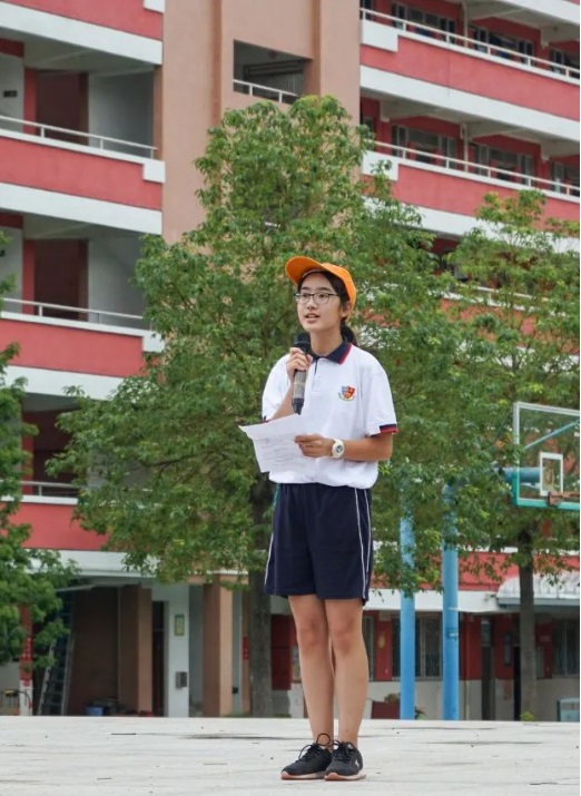 學(xué)生代表郭熙雯表示感恩學(xué)校、感恩老師、感恩教官,感謝此次軍訓(xùn)給予自己的勇氣與磨練,號(hào)召同學(xué)們繼續(xù)發(fā)揚(yáng)軍訓(xùn)精神,開(kāi)拓進(jìn)取,努力拼搏。