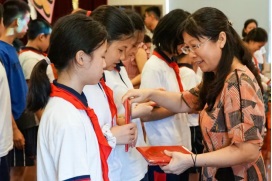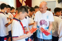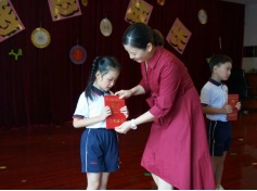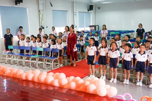 陳曉紅校長(zhǎng)助理感謝小學(xué)部一直為初中部輸送優(yōu)秀人才,鼓勵(lì)同學(xué)們?cè)谏铣踔泻笙蚋叩哪繕?biāo)拼搏。