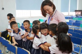 我們給老師獻(xiàn)上禮物,對(duì)老師說聲:“老師,您辛苦了!謝謝您給我們的愛和照顧!謝謝您的教育和培養(yǎng)!老師,我們愛您!