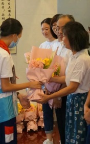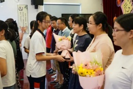 手捧鮮花,心懷感恩,九年級(jí)畢業(yè)生代表向?qū)W校領(lǐng)導(dǎo)、老師們獻(xiàn)花。這三年,老師,您辛苦了!