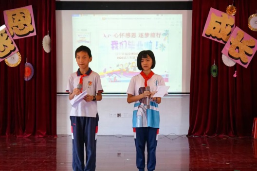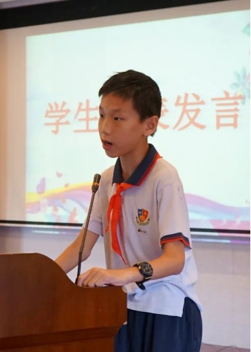 學(xué)生代表黃思博回顧了六年小學(xué)生活的點(diǎn)滴成長(zhǎng)歷程,表達(dá)了對(duì)母校的眷戀、對(duì)恩師的感激以及對(duì)未來的憧憬。