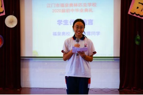 康涯副主任代表畢業(yè)班教師發(fā)言,短短的話語(yǔ),濃濃的情意,蘊(yùn)含著全體教師對(duì)同學(xué)們的殷切期待。