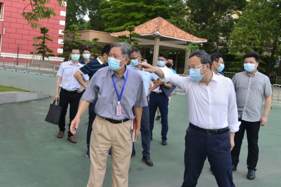 57日下午,江門市市委副書記、市長(zhǎng)劉毅帶隊(duì)到我們福泉奧校調(diào)研返校復(fù)課工作,實(shí)地察看了我校疫情防控落實(shí)情況。江門市政府副秘書長(zhǎng)江寧進(jìn)、江門市教育局黨組書記局長(zhǎng)張璐,市衛(wèi)生健康局、市應(yīng)急管理局、市府辦、市教育局相關(guān)領(lǐng)導(dǎo)參加。