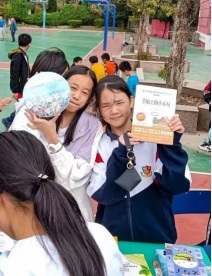 為了吸引顧客,同學(xué)們各出奇招,有的精心制作海報(bào),將自己班上的義賣攤位布置得極具個(gè)性;有的班級(jí)打出了買商品贈(zèng)禮物的促銷廣告,吸引了不少顧客;還有的“流動(dòng)商家”帶上自己的“產(chǎn)品”到處找尋購買者。同學(xué)們在獻(xiàn)愛心的同時(shí),也充分展示了福泉學(xué)子的才華。