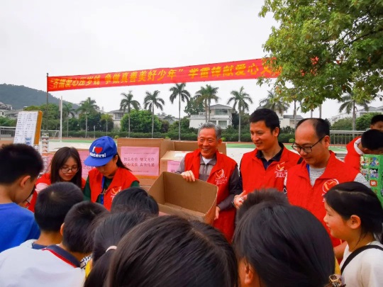 ▲羅校長發(fā)揮帶頭作用,帶領(lǐng)學(xué)校領(lǐng)導(dǎo)、骨干教師加入愛心義賣。
