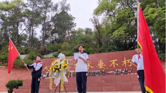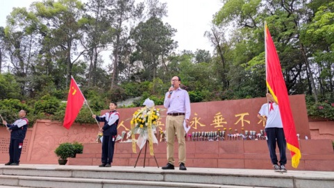 在紀(jì)念碑前,校團委葉頌堯書記為本次活動獻詞。葉書記在獻詞中講述了江門革命先烈英勇奮斗、犧牲自我、永不叛黨的偉大事跡,并號召同學(xué)們要發(fā)奮學(xué)習(xí),繼承革命先烈的優(yōu)良傳統(tǒng),將來為國家增光,為祖國添彩。