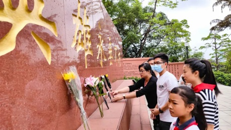 活動在莊嚴(yán)肅穆的氣氛中進行,師生列隊緩步走到紀(jì)念碑前,獻上了寄托著對烈士緬懷和敬仰之情的鮮花,瞻仰碑上先烈的英雄事跡。