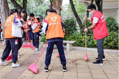 儀式結(jié)束,師生志愿者們開展美化英雄山志愿服務(wù)活動,清掃地面、撿拾垃圾,清理花圃和樹葉。
