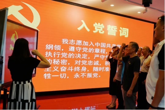 最后,黨支部副書記梁協(xié)和帶領(lǐng)各黨員同志面向黨旗,莊嚴地重溫入黨誓詞,鏗鏘有力的宣誓聲響徹福泉校園的上空。