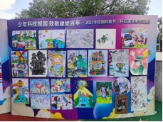學(xué)校領(lǐng)導(dǎo)為本屆科技節(jié)科幻畫(huà)獲獎(jiǎng)的學(xué)生頒獎(jiǎng)。