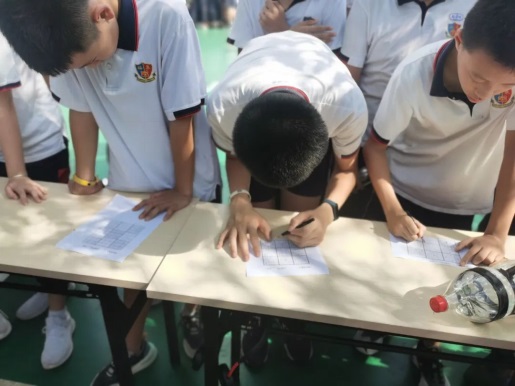 同學(xué)們低頭沉思、爭(zhēng)分奪秒,在九宮格上決一勝負(fù)。
