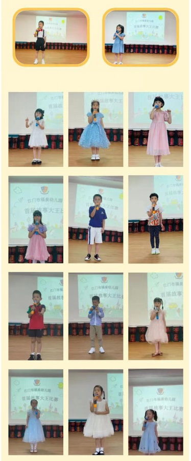 童話故事像陽光雨露,滋潤著大家的夢想。為了給孩子們提供一個展示自我的舞臺,鍛煉孩子們的膽量,提高他們的語言表達能力,我園于5月20日、21日舉行“福泉幼兒園首屆故事大王比賽”,福泉寶貝們在舞臺上大放異彩。
