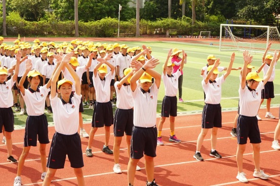隨著廣播體操音樂的響起,七年級各班隊伍閃亮登場。同學(xué)們自信陽光,活力四射,激情洋溢,做出的每一個動作都整齊有力,干凈利落。