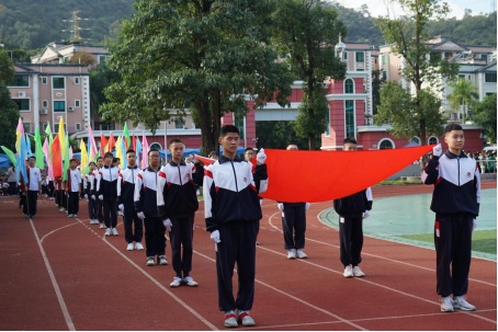 上午8點(diǎn),氣宇軒昂的國旗護(hù)衛(wèi)隊(duì),踏著整齊有力的步伐走向主席臺(tái),青春靚麗的彩旗方陣隊(duì)緊隨其后,展現(xiàn)出福泉學(xué)子蓬勃向上的精神面貌。