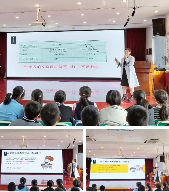張醫(yī)生以“陽光成長,健康飛揚(yáng)”為主題,分別從青春期的生理變化、青春期的心理變化、青春期的人際特點(diǎn)這幾個(gè)大的方面向?qū)W生詳細(xì)作講解,引發(fā)大家積極討論,運(yùn)用圖片、案例對(duì)青春期的知識(shí)展開講解,引導(dǎo)孩子們以科學(xué)認(rèn)真的態(tài)度來對(duì)待青春期出現(xiàn)的憂慮、煩躁和處理跟同性及異性同學(xué)之間的關(guān)系。