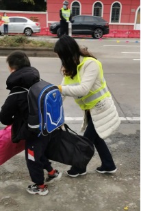 家長(zhǎng)義工們一大早就把孩子送到學(xué)校,還沒(méi)來(lái)得及整理自己孩子的行李,就到校門(mén)口協(xié)助學(xué)校進(jìn)行開(kāi)學(xué)交通疏導(dǎo)工作。校門(mén)口人來(lái)車(chē)往,熙熙攘攘,但交通保持順暢。