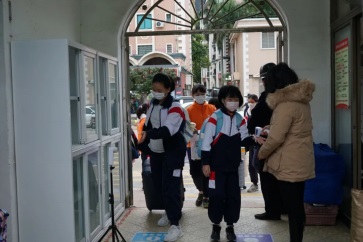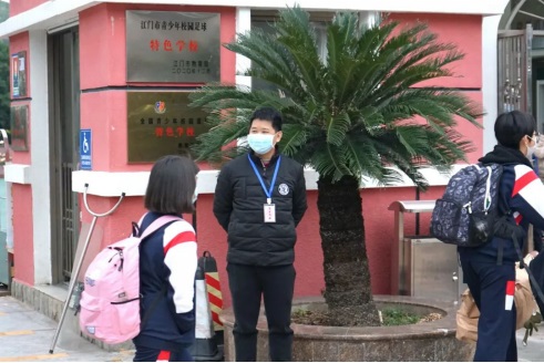 開(kāi)學(xué)防疫不松懈,同學(xué)們不忘測(cè)體溫、戴口罩,有序進(jìn)入校門(mén)。