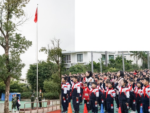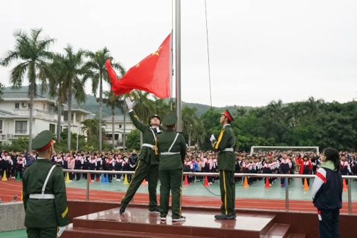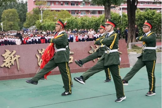 典禮伊始,國(guó)旗隊(duì)邁著矯健整齊的步伐入場(chǎng),全體師生齊唱國(guó)歌,在嘹亮高昂的歌聲中,鮮艷的五星紅旗冉冉升起。