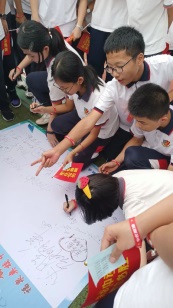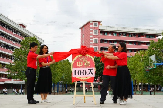 鐘明洋校長(zhǎng)、羅金宏校監(jiān)、李明級(jí)長(zhǎng)和陳小梅級(jí)長(zhǎng)給中考倒計(jì)時(shí)揭牌,宣告八九年級(jí)全體師生正式向中考最后百日沖刺發(fā)起總攻。