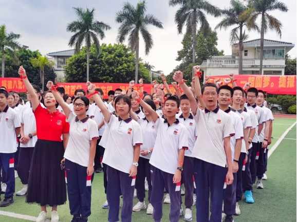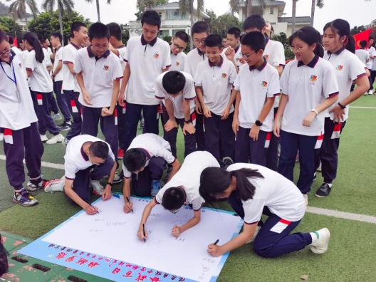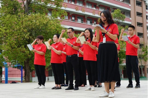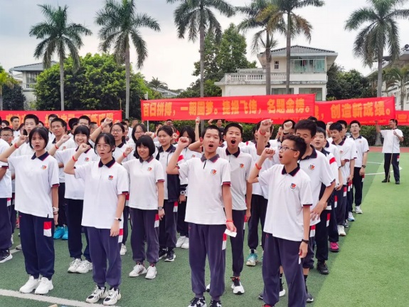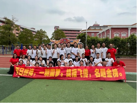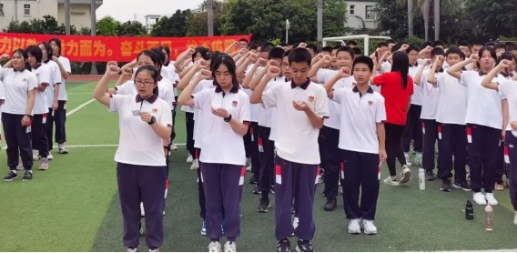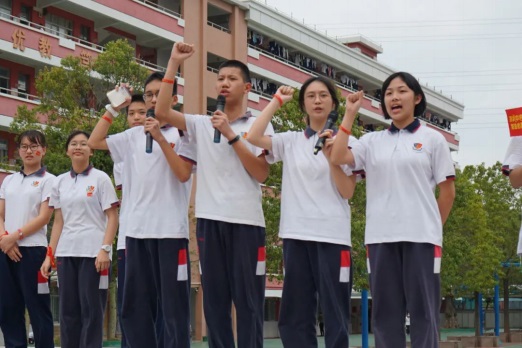 教師代表曾濤中和梁邱文為同學(xué)們加油打氣,要強(qiáng)勢(shì)出擊,讓信念與行動(dòng)同步,讓快樂與成功齊飛。