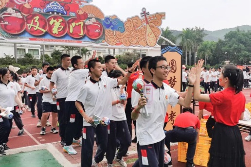 在熱烈氣氛鼓舞下,各班以整齊的腳步、飽滿的狀態(tài)沖向 “及第門”,學(xué)校領(lǐng)導(dǎo)和老師們給同學(xué)們擊掌加油打氣,祝愿每位同學(xué)以最好的姿態(tài),奮力奔向中考的終點(diǎn)線。