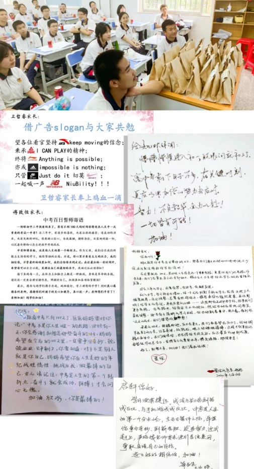 回到教室,各班繼續(xù)進(jìn)行動(dòng)員大會(huì),會(huì)上老師們播放了家長(zhǎng)們提前錄制的鼓舞視頻和給孩子的一封信,一幕幕熟悉的畫面在腦海中不斷閃現(xiàn),同學(xué)們心里百感交集,也更加堅(jiān)定了他們?nèi)σ愿皼_刺中考的決心。