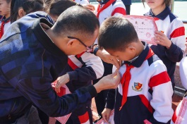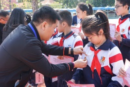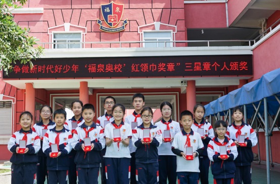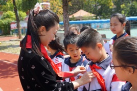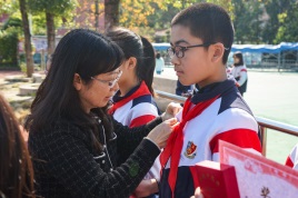 十五名隊(duì)員們排著整齊的隊(duì)伍出列,接受黨支部書記梁協(xié)和、校長(zhǎng)鐘明洋、德育處主任關(guān)冠科、大隊(duì)輔導(dǎo)員黃翠玲為他們佩戴“紅領(lǐng)巾獎(jiǎng)?wù)隆比钦隆?/span>