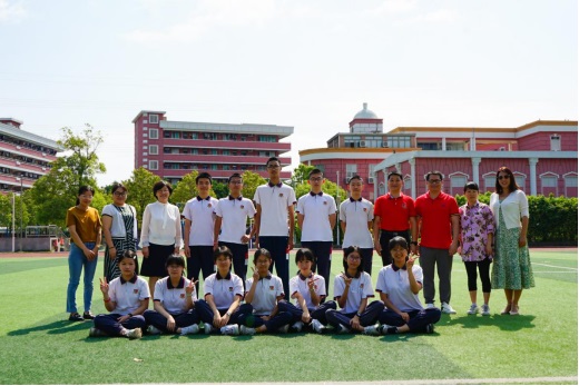 ▲學(xué)校領(lǐng)導(dǎo)、四大科任老師和入選創(chuàng)新班的同學(xué)合影