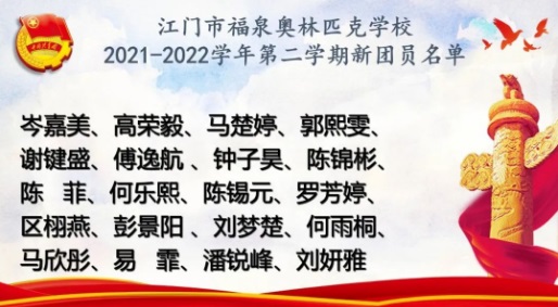 新團(tuán)員代表謝鍵盛同學(xué)莊嚴(yán)承諾:“作為新成員,會(huì)時(shí)刻以一名優(yōu)秀團(tuán)員的標(biāo)準(zhǔn)要求自己,遵照?qǐng)F(tuán)的章程,執(zhí)行團(tuán)的決議,履行團(tuán)員義務(wù),用實(shí)際行動(dòng)實(shí)踐自己的入團(tuán)誓言。努力把自己打造成有理想、有道德、有文化、有紀(jì)律的時(shí)代先進(jìn)青年,為祖國(guó)的繁榮昌盛,為共產(chǎn)主義事業(yè)而奮斗終身”
