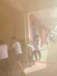 演習(xí)前,我校成立了以鐘明洋校長(zhǎng)為總指揮的領(lǐng)導(dǎo)小組,從樓梯引導(dǎo)、報(bào)警計(jì)時(shí)、清點(diǎn)人員等環(huán)節(jié)都進(jìn)行了周密安排。本次演習(xí)預(yù)設(shè)場(chǎng)景為宿舍樓某處發(fā)生火災(zāi)。13點(diǎn)35分,警報(bào)鈴聲拉響,各宿舍樓樓道濃煙滾滾,消防演習(xí)拉開序幕。在老師們的指揮下,午睡中的學(xué)生迅速反應(yīng),捂住口鼻、彎腰,有序地進(jìn)行緊急疏散,到達(dá)指定的安全區(qū)域。