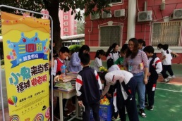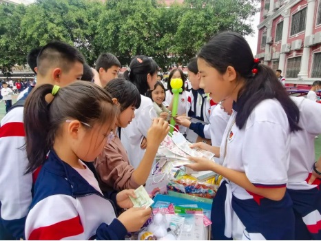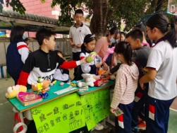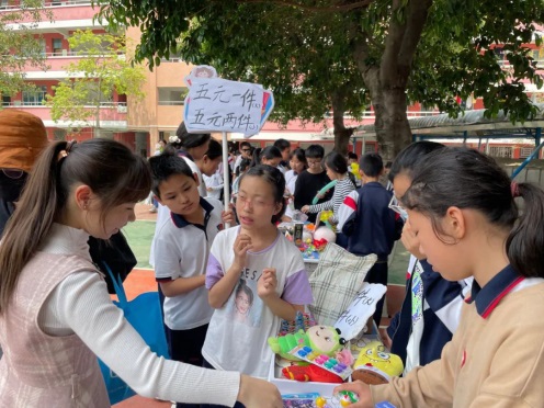 每個(gè)班級(jí)的小攤布置都別出心裁,琳瑯滿(mǎn)目的商品令人目不暇接,有學(xué)習(xí)用品、兒童玩具、工藝飾品、精美圖書(shū)、各類(lèi)零食等。一陣陣嘹亮悠長(zhǎng)的吆喝聲,一件件洋溢愛(ài)心的義賣(mài)品,一張張陽(yáng)光自信的面孔,同學(xué)們用愛(ài)心傳遞著希望和夢(mèng)想。