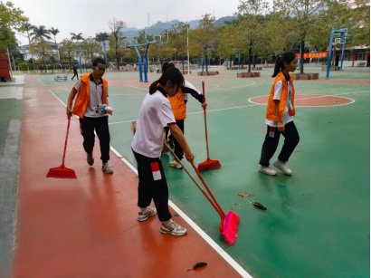 活動(dòng)結(jié)束后,團(tuán)委、學(xué)生會(huì)干部幫忙清理會(huì)場(chǎng)衛(wèi)生,踐行雷鋒精神。