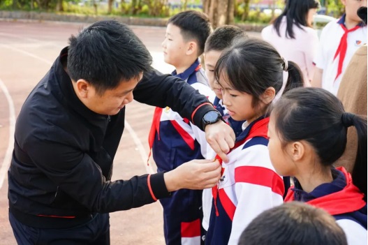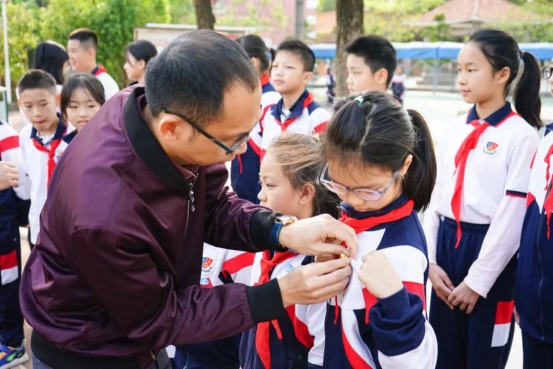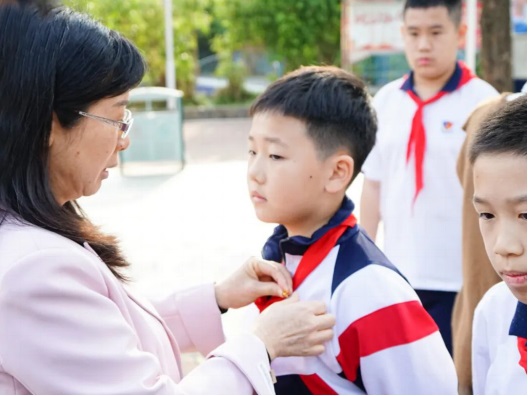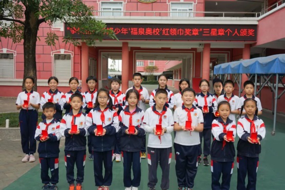 在周一的升旗儀式上,獲得三星章的少先隊(duì)員排著整齊的隊(duì)伍出列,接受學(xué)校領(lǐng)導(dǎo)為他們佩戴代表榮譽(yù)的徽章。