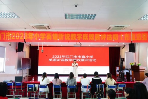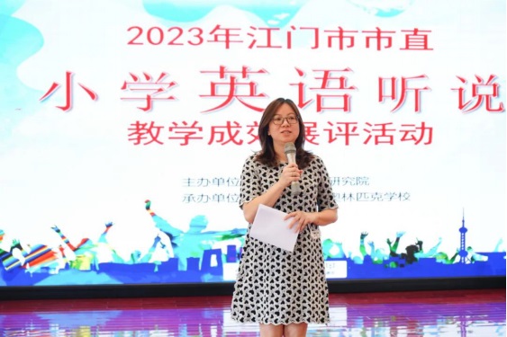 江門市教育研究院小學(xué)英語教研員陳曉瓊主任宣布獲獎名單,對孩子們在本次選拔賽的精彩表現(xiàn)大為贊賞,稱他們?yōu)橛⒄Z聽說教學(xué)作了很好的示范,期待市直學(xué)校代表能在大市比賽中繼續(xù)用英語講好中國故事。