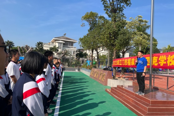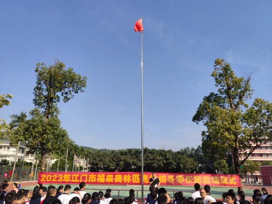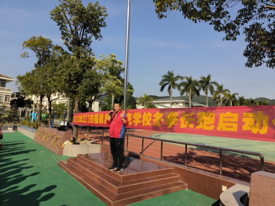 鐘明洋校長宣布:“福泉奧校陽光冬季長跑正式啟動!”拉開了活動序幕。