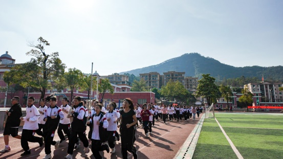 各年級學生以班級為單位,在班主任老師的帶領下,邁出了具有象征意義的一步。跑步過程中,同學們跑姿規(guī)范,步調一致,口號響亮,青春的旋律在冬日的陽光下盡情跳躍。