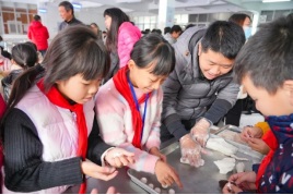 接下來是同學(xué)們大顯身手的時候,在老師的指導(dǎo)下,同學(xué)們興奮地拿起面團,搓、揉、壓……一個個圓潤可愛的湯圓在他們的手中誕生了。