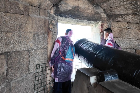 威遠(yuǎn)炮臺是一座銹跡斑斑卻不失莊嚴(yán)神圣的炮臺,書寫了一段浴血奮戰(zhàn)、保家衛(wèi)國的抗?fàn)幨贰6衽诼曤m無,師生卻仍能在喧囂的浪潮與海風(fēng)中緬懷那些不懼外敵、不屈不撓的民族魂,以及反思那段抗敵御辱卻痛失國土的屈辱史。參觀過程中,各人無不心潮澎湃、感慨萬千。