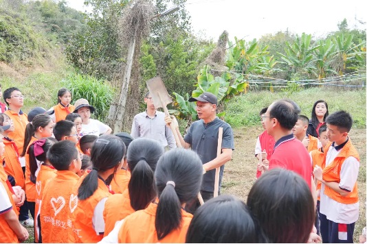 另一邊,在林地的師生根據(jù)農(nóng)場(chǎng)老板的指導(dǎo),挖出了大小適宜的坑,為栽種做好準(zhǔn)備。