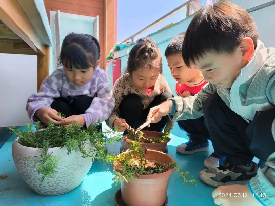 小班級(jí)的孩子們?cè)诶蠋煹闹笇?dǎo)下,化身“種植小能手”,通過種植豆類來共同探究植物生長(zhǎng)的秘密,挖土、播種、澆水,齊心協(xié)力的勞動(dòng)場(chǎng)面形成一道獨(dú)特的風(fēng)景線。
